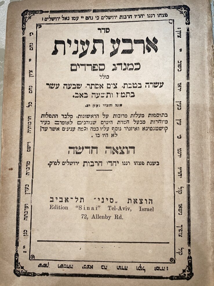 סדר ארבע תענית כמנהג ספרדים - התפלות המיוחדות מבעל חמדת הימים שנוהגים לאומרם בעיר קושטאנטינא ואיזמיר - תל אביב