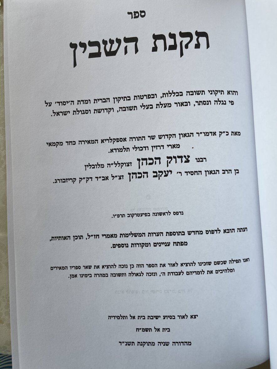 תקנת השבין - ר צדוק